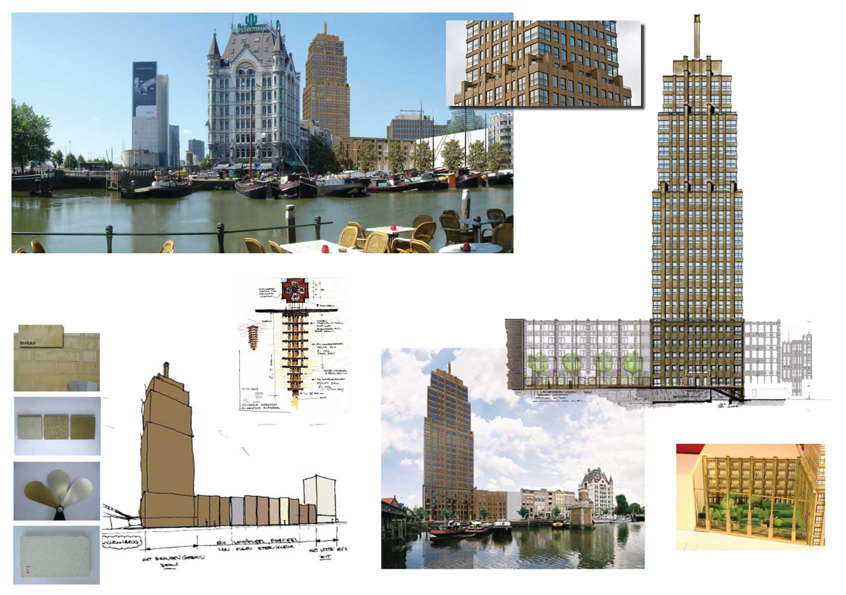 Als aanvulling en beëindiging van de gevelwand aan de Wijnhaven werd deze bronzen woontoren ontworpen als evenwicht op het bestaande Witte Huis. De opdrachtgever wenste een ontwerpstijl als die van de woontoren in Enschede. De complexiteit van het project zat in de medewerking van de gemeente; aangezien er geen visie was op dit gebied, heeft dit de nodige tijd en inspanningen gekost. Na het vaststellen van de stedenbouwkundige randvoorwaarden, tezamen met de andere initiatiefnemers in dit gebied, kon snel gebouwd worden. Dit resulteerde o.a. in complexe geprefabriceerde gevelelementen (constructief, bouwfysisch en esthetisch. Werkzaam als verantwoordelijk project-architect