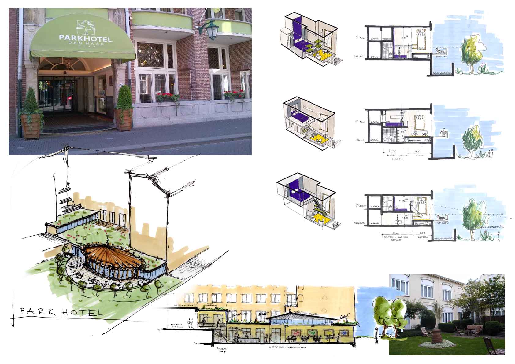 In deze opgave werd er gezocht naar modernisering van het verouderde restaurant. De oplossing was een paviljoen als restaurant in de grote groene tuin. Hierdoor kon op de oude plek van het restaurant in het bestaande gebouw, 3 nieuwe typen hotelkamers worden gemaakt. Werkzaam als creatief-architect