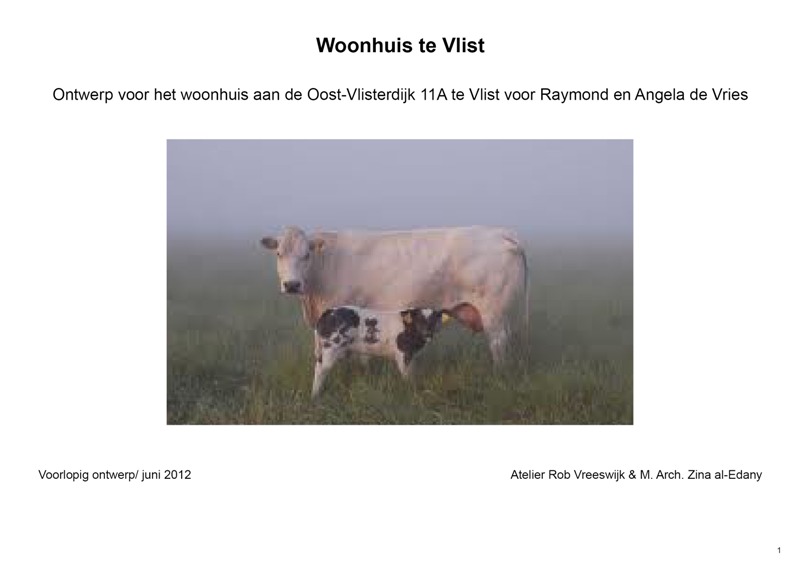 Deze mensen wilde uit de stad naar een landelijke omgeving. Na een lange en intensieve zoektocht vonden ze een huis in de Vlist gevonden; midden in het groene hart ver weg van wegen en masten. Ze kochten een kavel aan de dijk met een woonhuis, een schuur en een stal. Samen met Zina al Edany; architect, is er een plan van aanpak gemaakt waarin we de bestaande kwaliteiten hebben bewaard en versterkt met nieuwe toevoegingen. Bedoeling van dit plan is om elke inspanning te leiden naar een eindbeeld als omschreven in dit plan; compleet met ontwerpen, materialen, kleuren en financieen.